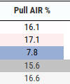 His whiff rate is still bad, but it's better than what it was in '24 (down 6%) and his k rate is only 17% at the moment. All his metrics right now are solid. He just continues to chase a lot of pitches outside the zone WHICH HE HAS ALWAYS DONE AND WILL ALWAYS DO. I think he's been a little unlucky so far, but his approach is better this year than it was last year for the most part. He's walking more, hitting the ball harder, barrelling the ball more often, but there's only one issue that I've noticed. Once he gets to pulling that ball in the air again, he'll put up numbers again.